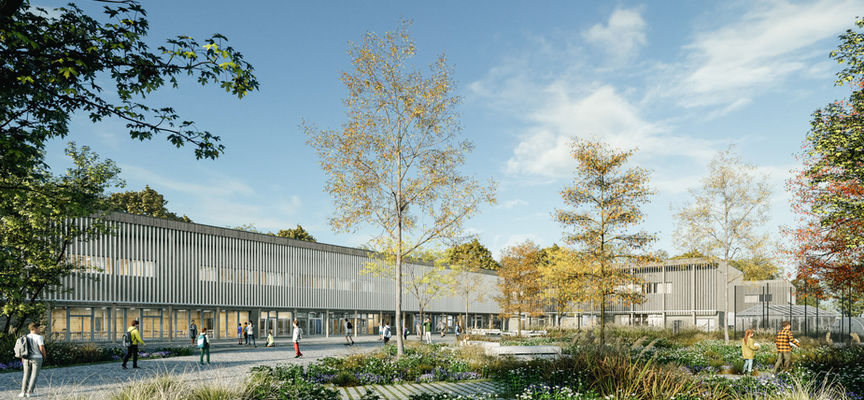 Programme : Reconstruction à neuf en site occupé du collège existant Auguste Renoir comprenant 26 divisions générales, 4 divisions SEGPA, une unité ULIS (15 élèves à l'handicap moteur très lourd) et une unité pédagogique UPE2A (25 élèves allophones arrivants) ; service de restauration neuf, salle polyvalente avec accès autonome. Le parti architectural du projet est la création d'un bâtiment fort placé en équerre Sud-Sud-Ouest sur le site et à la lecture simple alors même qu'il est issu d'une programmation complexe en site occupé.